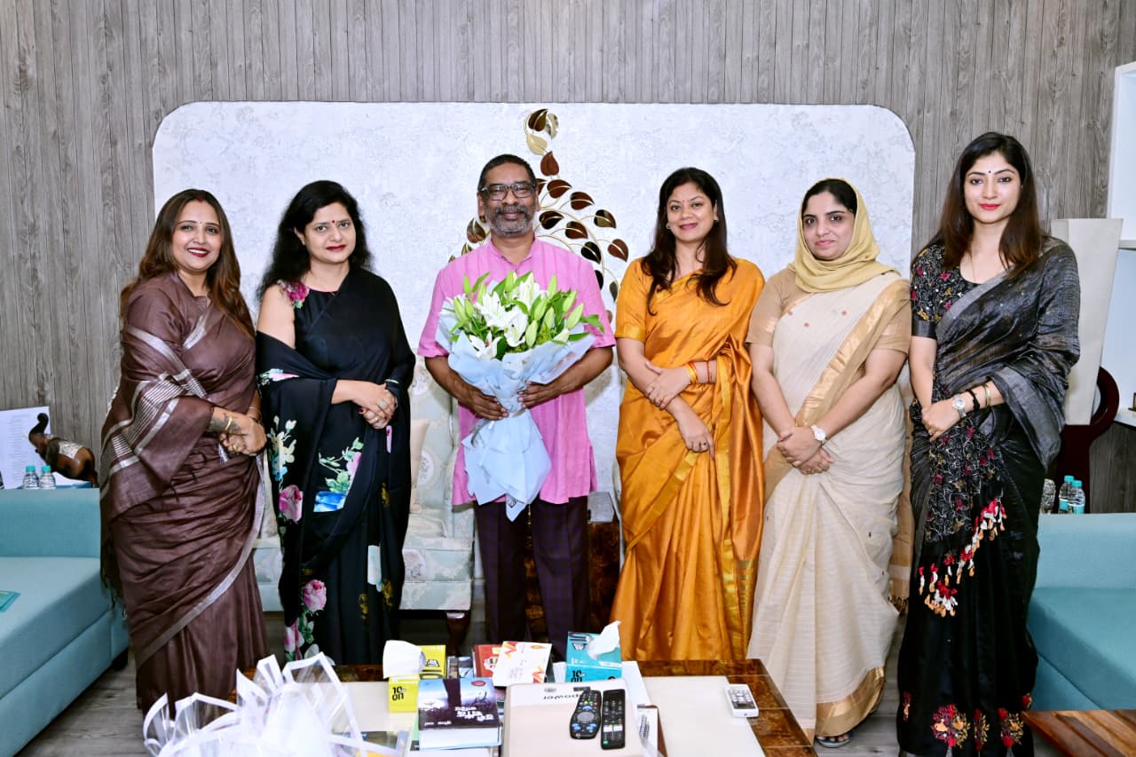 रांची। झारखंड के मुख्यमंत्री हेमंत सोरेन एवं विधायक कल्पना सोरेन से शनिवार को मुख्यमंत्री आवासीय कार्यालय में झारखंड आईएएस ऑफिसर्स वाइव्स एसोसिएशन (जेसोवा) के प्रतिनिधिमंडल ने शिष्टाचार मुलाकात की। प्रतिनिधिमंडल के सदस्यों ने मुलाकात के दौरान जेसोवा की ओर से राजधानी रांची के मोरहाबादी मैदान में 9 अक्टूबर से 13 अक्टूबर – 2025 तक आयोजित होनेवाले पांच दिवसीय दिवाली मेला में सम्मिलित होने के लिए मुख्यमंत्री को आमंंत्रण पत्र सौंपा। मुख्यमंत्री से मुलाकात करने वालों में जेसोवा की सचिव मनु झा, कोषाध्यक्ष शिवानी सिंह, कार्यकारिणी समिति सदस्य निक्की टोप्पो, जेसिना सिद्दीकी एवं ऋचा वर्णवाल शामिल थीं